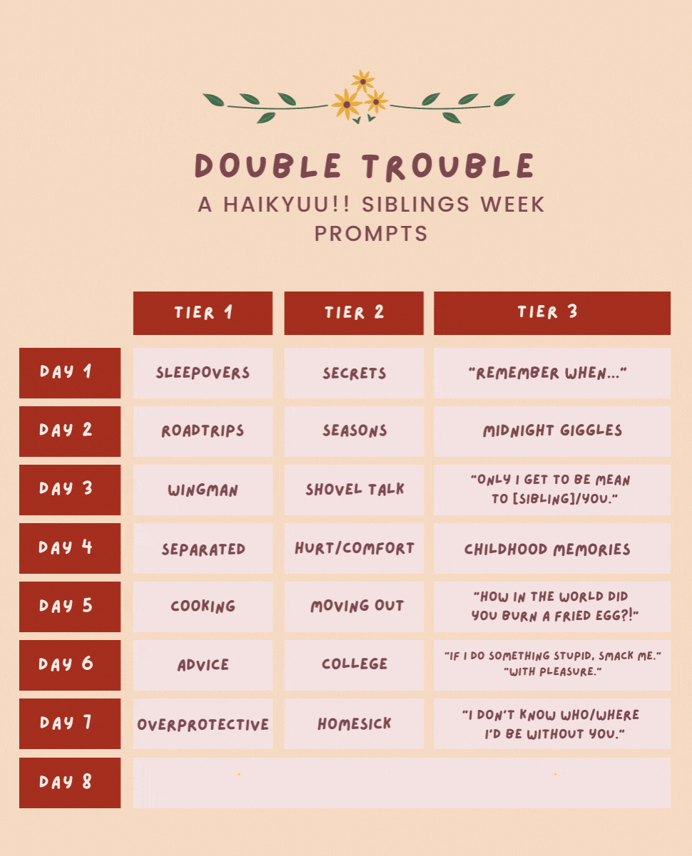 We will be sticking to canon siblings only - with the exception of the Sakusa-Komori cousin dynamic. You can find a list of canon Haikyuu!! siblings here.